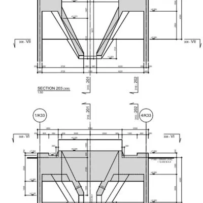 Zakres usług: rysunki wykonawcze konstrukcji żelbetowych.